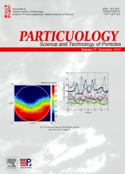 This paper presents the simulation of material flows in the large-scale charging chute of Fos-Sur-Mer sinter cooler plant by using three-dimensional Discrete Element Method(DEM).As a result of granular flows in the chute,segregation patterns are formed at the charging exit.The sinter material is modelled as dry particles and their size distribution in the simulation is larger than in the reality to keep the simulation in a reasonable run time.Suitable calibration tests are performed to specify the DEM contact parameters in order to replicate the behavior observed during experiments with the virtual sinter particles.The DEM model is found to be in good agreement with a segregation measurement.A sensitivity analysis using different particle sizes shows that the segregation patterns are not affected by the different sizes used for fine particles.Furthermore,the filling ratio in the charging system is varied in the model and shows that a high filling ratio leads to less segregation when exiting the charging chute.The DEM model is used to analyze the granular flows in the charging chute,understand the material behavior and optimize the sinter cooling efficiency.